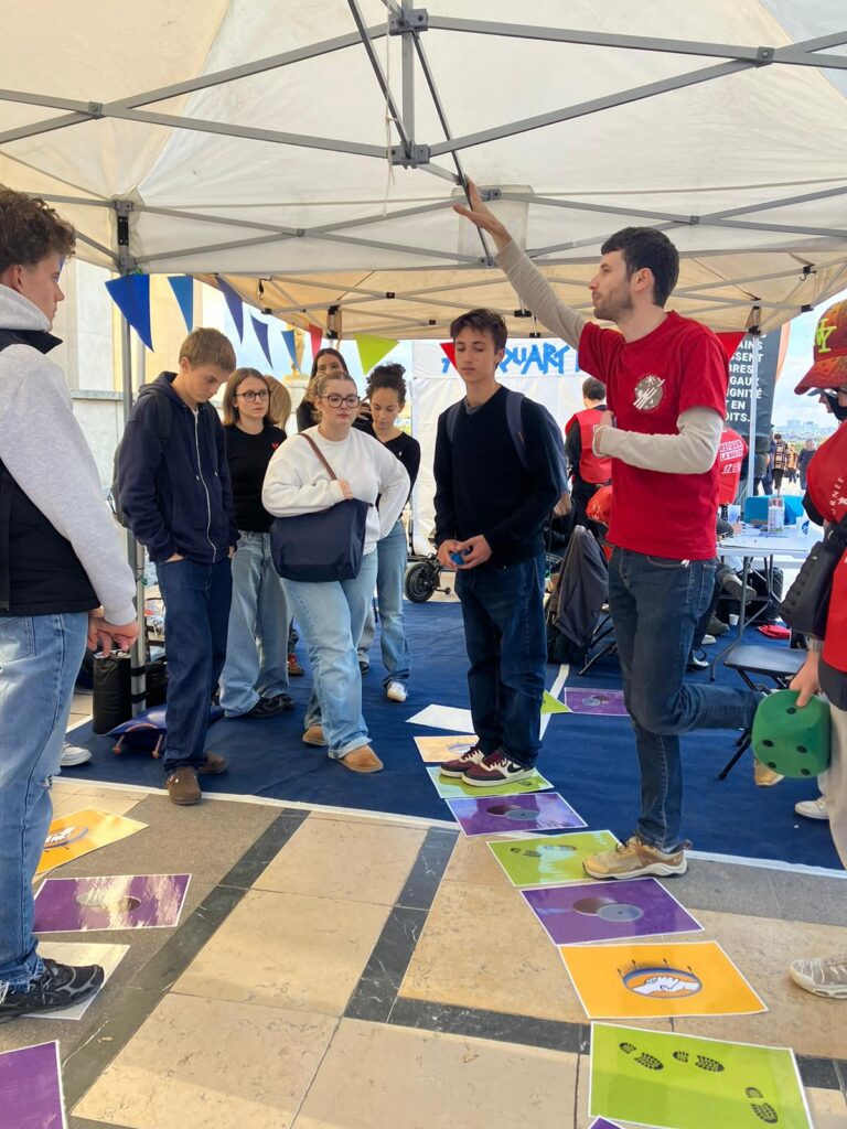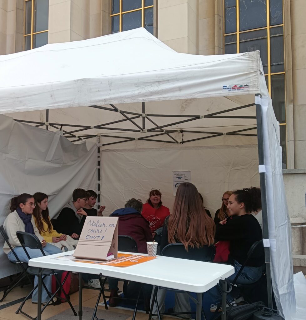 Sur place, nous avons eu accès à plusieurs activités telles que l’atelier philosophique. Durant cette activité, le but était que les participants réfléchissent ensemble à des mots et des questions sur la justice et la solidarité. Ensuite, nous pouvions dessiner et écrire sur une très grande feuille ce que l’on souhaitait changer à propos de la misère. Cela a formé une magnifique pancarte. Enfin, nous avons participé à un jeu collectif avec deux bénévoles de l’association « ATD quart-monde ». Ce jeu se nommait : « le parcours de la dignité ».